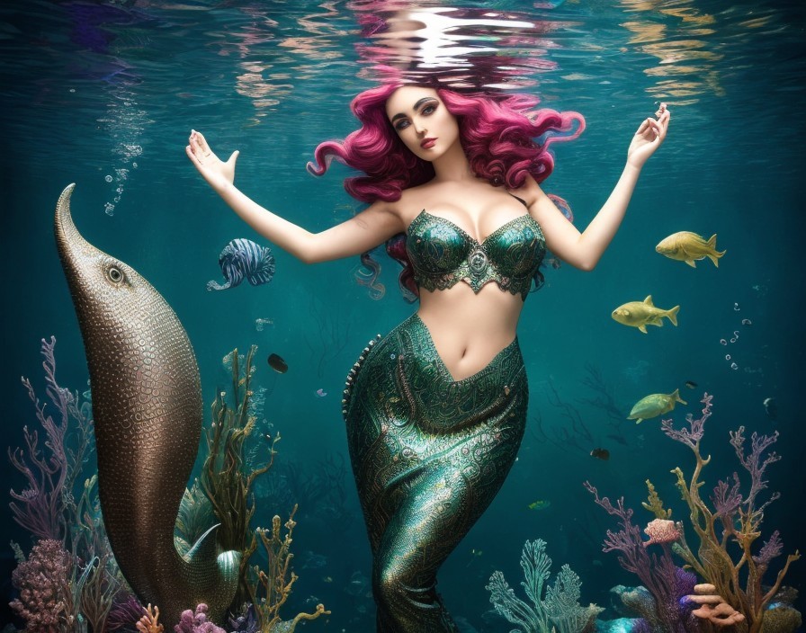 An illustration of a woman with flowery dress and purple hair surrounded by a vibrant mosaic of colorful flowers against a dark background.
