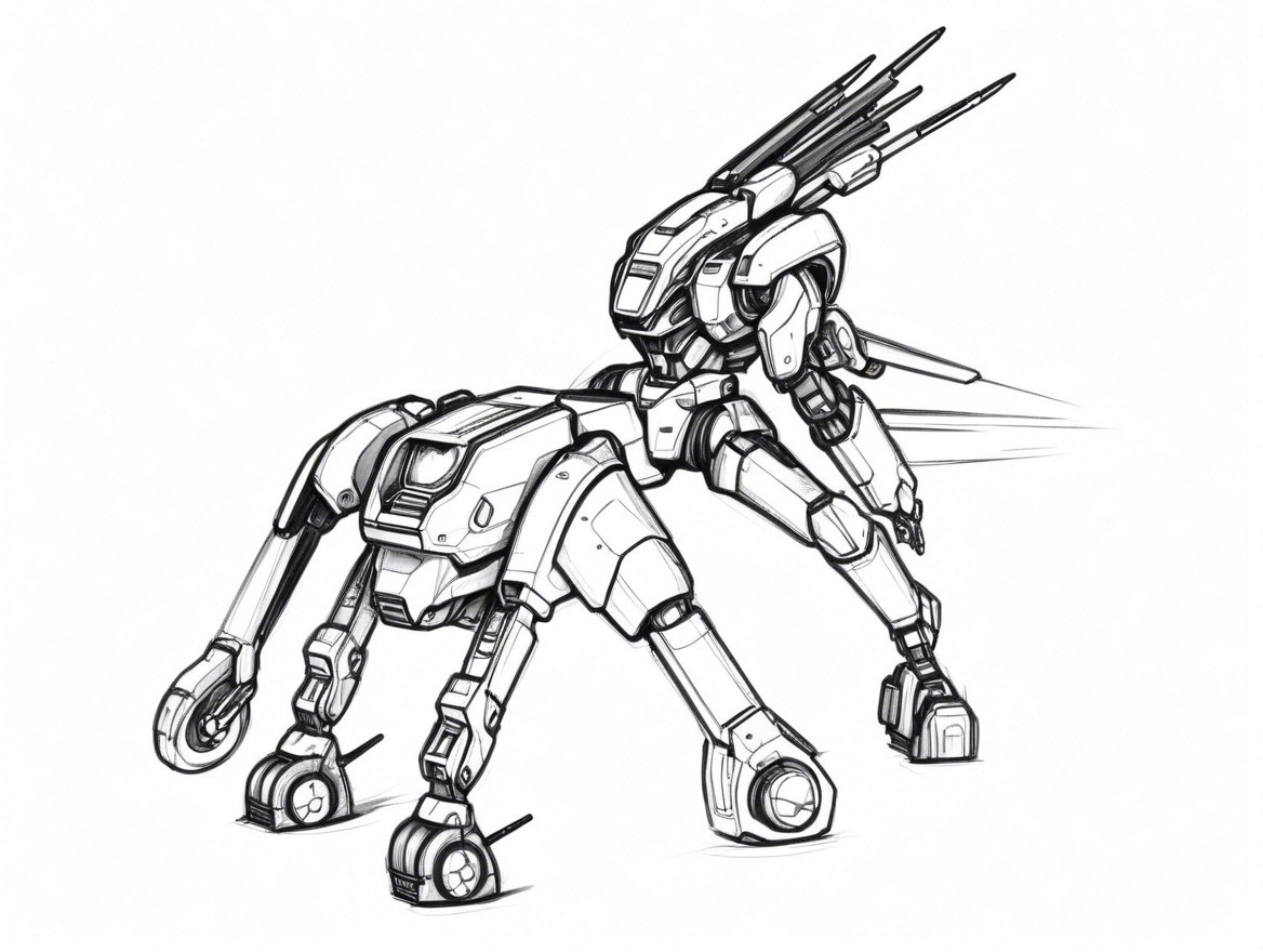 The image features a futuristic robot designed like a dog, equipped with four legs that have wheels. It has a sleek, mechanical body with advanced features, evoking a blend of agility and technology.