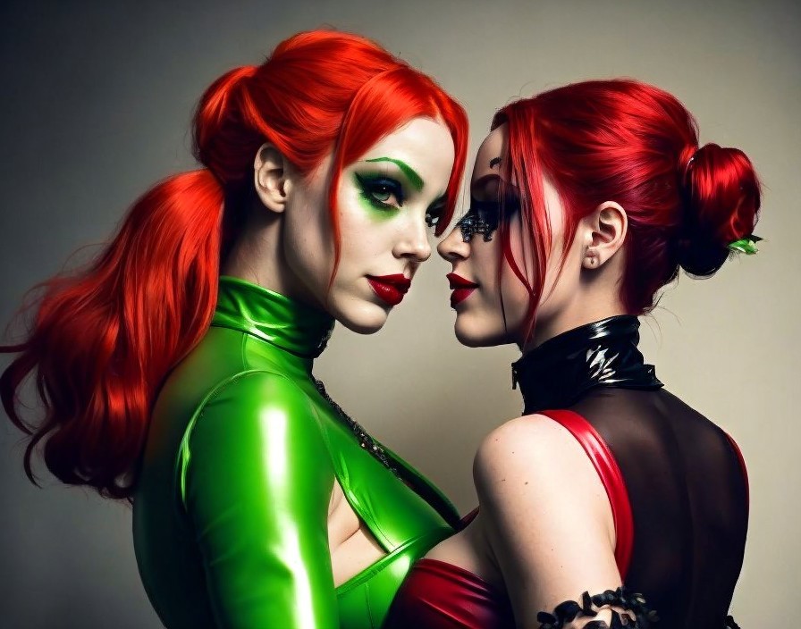 Two Women in Glamorous Outfits with Red Hair