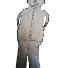 The image features a cartoon character with a round face, slightly slouched posture, and a simple button-up shirt. The character appears thoughtful, with hands clasped behind their back.
