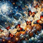 Vibrant Stained-Glass Cosmic Scene with Butterflies