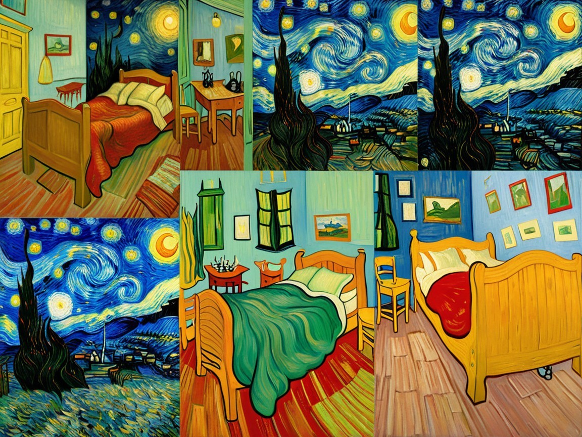 Prompt: "Pairs being created out of pairs. So you have a pair equalling 2, pairs of pairs equalling 4, pairs of pairs of pairs equalling 8, pairs of pairs of pairs of pairs equalling 16 and so on. From this we can derive the concept of 1+1=2 in the style of Van Gogh"