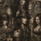The image features five glamorous women with long hair, striking makeup, and stylish outfits, posing confidently against a backdrop of art tools and vibrant colors, exuding creativity and allure.