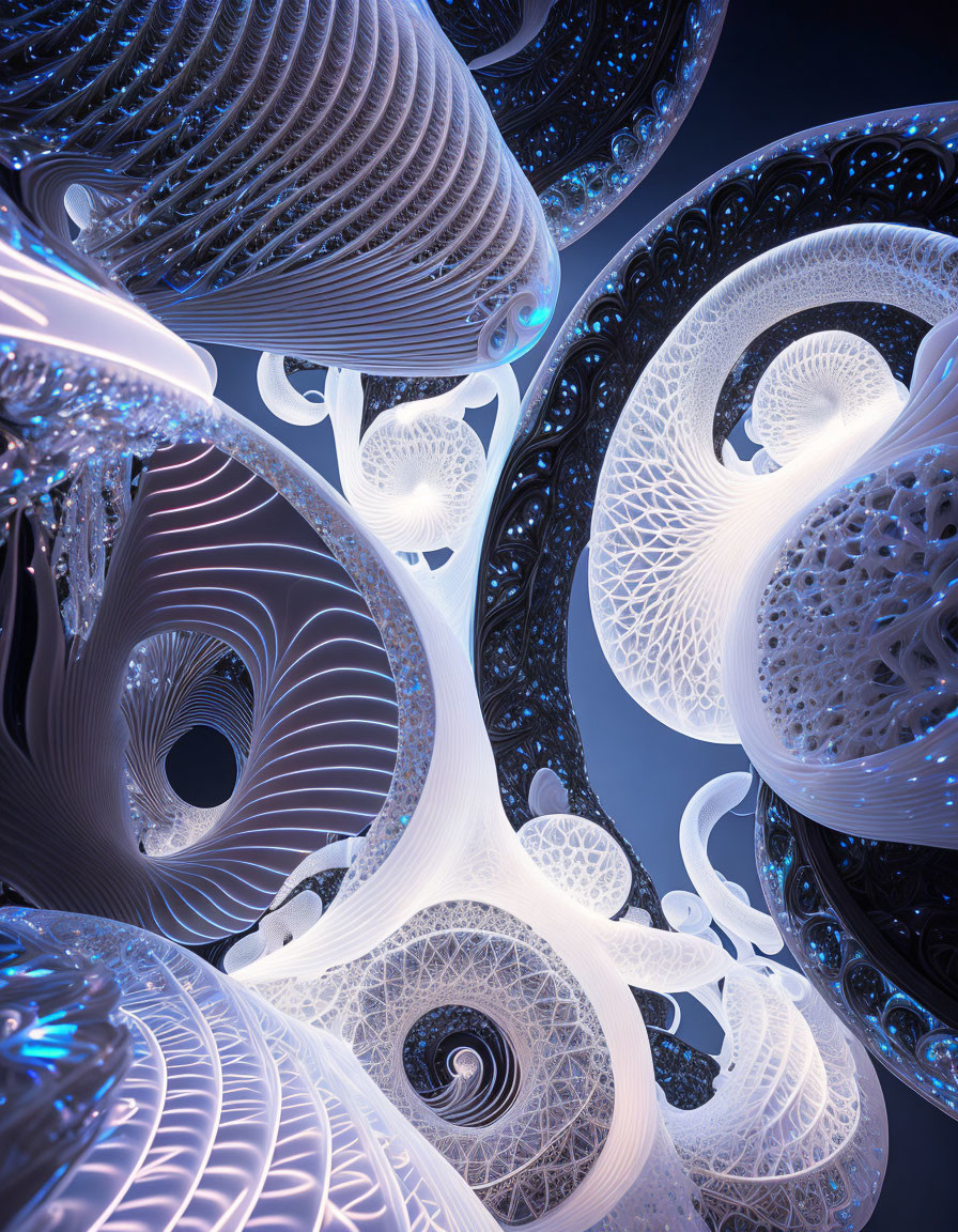 + Prompt:Black and white fractal sculpture with neon lights. Lots of undulating rays, magnetic fluids, plaster extensions. Perfect liquid and transparent forms. Creative potential manifested by transparent fractals. Making small neon lights. Infinity spirals.