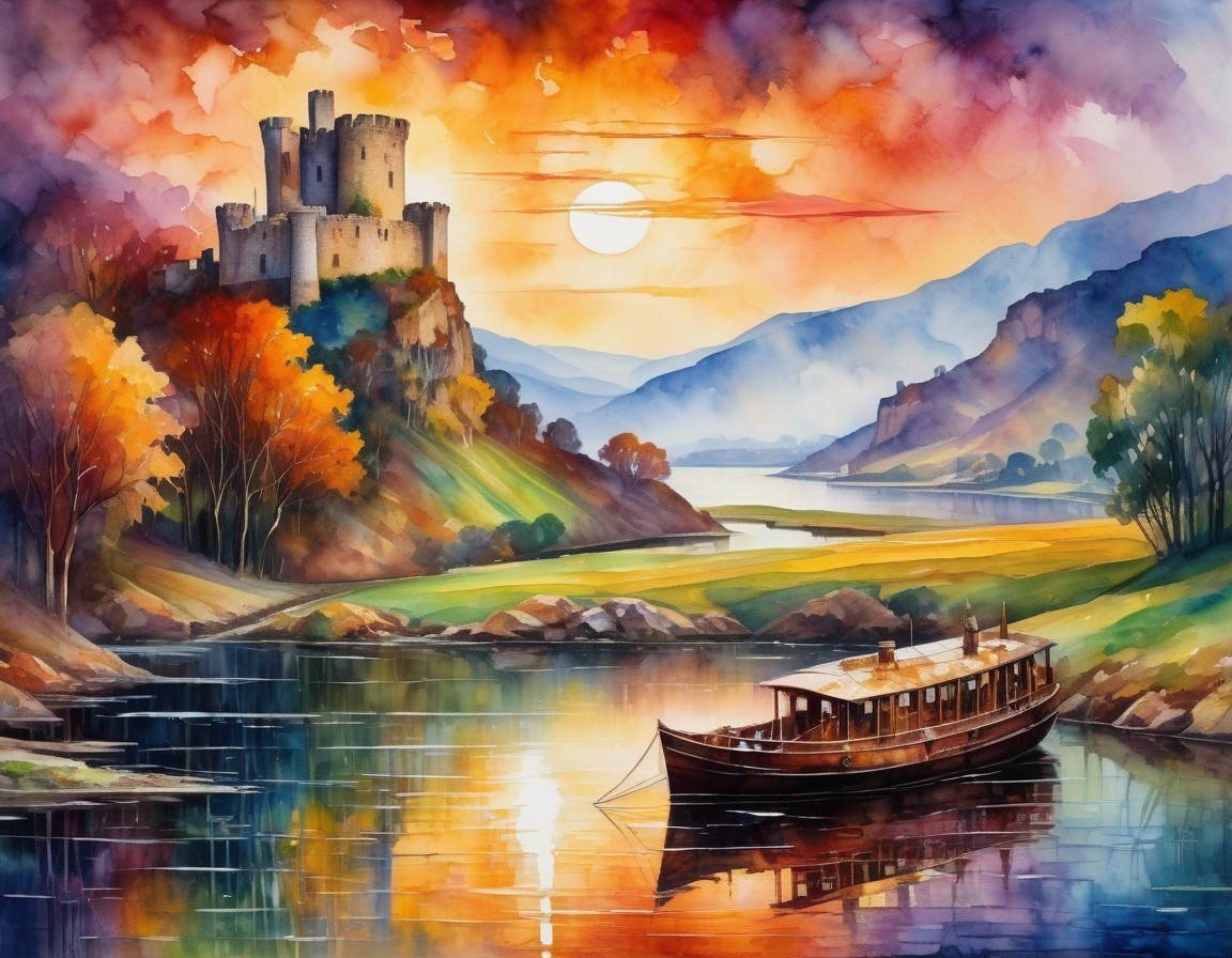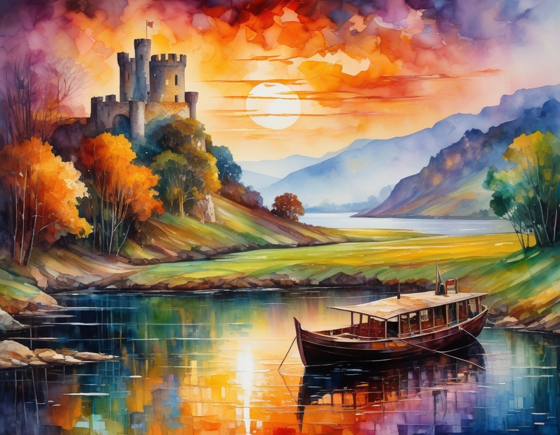 A watercolor painting depicts a sunny landscape view featuring Castle O'Brien.