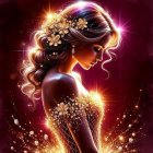 Elegant Woman in Golden Gown with Floral Accents