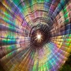 A delicate spider web glistens with dew drops, showcasing intricate patterns. The background features a vibrant blur of colors, enhancing the web's beauty in a natural setting.