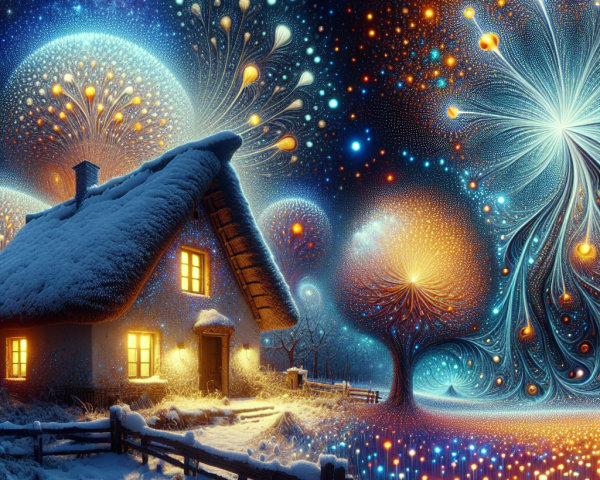 Prompt: Single image, Botanical illustration featuring a picturesque autumn landscape, a woman with umbrella walking a dirt path alongside a rocky stream, vintage autumn flora, sunrise, pale sun, stormy sky in shades of blue and grey; auburn, cinnamon, copper and golden trees bending in the stormwind, pale watercolour blend wet on wet, iridescent art nouveau painting masterpiece in the style of Maria Prymachenko, Meghan Duncanson and Odilon Redon, rain drops and rays of sunlight, luxurious iridescent silk texture, by Susanne, fine golden 3D linework by Troy Carney, gold leaf details, Japanese Mokuhanga art, pastel and ink illustration in the style of Ivan Billibin and Z.L. Feng, gold dust, white batik outlines, focus on 3D textures, paint splatter, splashes, dramatic yet dreamy atmosphere, detailed, intricate.