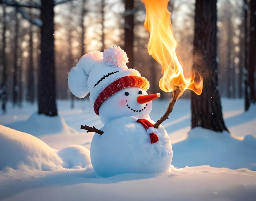Thoughtless snowman playing with fire