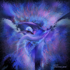 A fantastical scene showcasing a floating castle above a shimmering lake, surrounded by rocky cliffs. A small boat drifts near an eerie house under a glowing moon and starry sky.