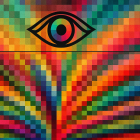 Stylized Eye Surrounded by Colorful Radiant Rays