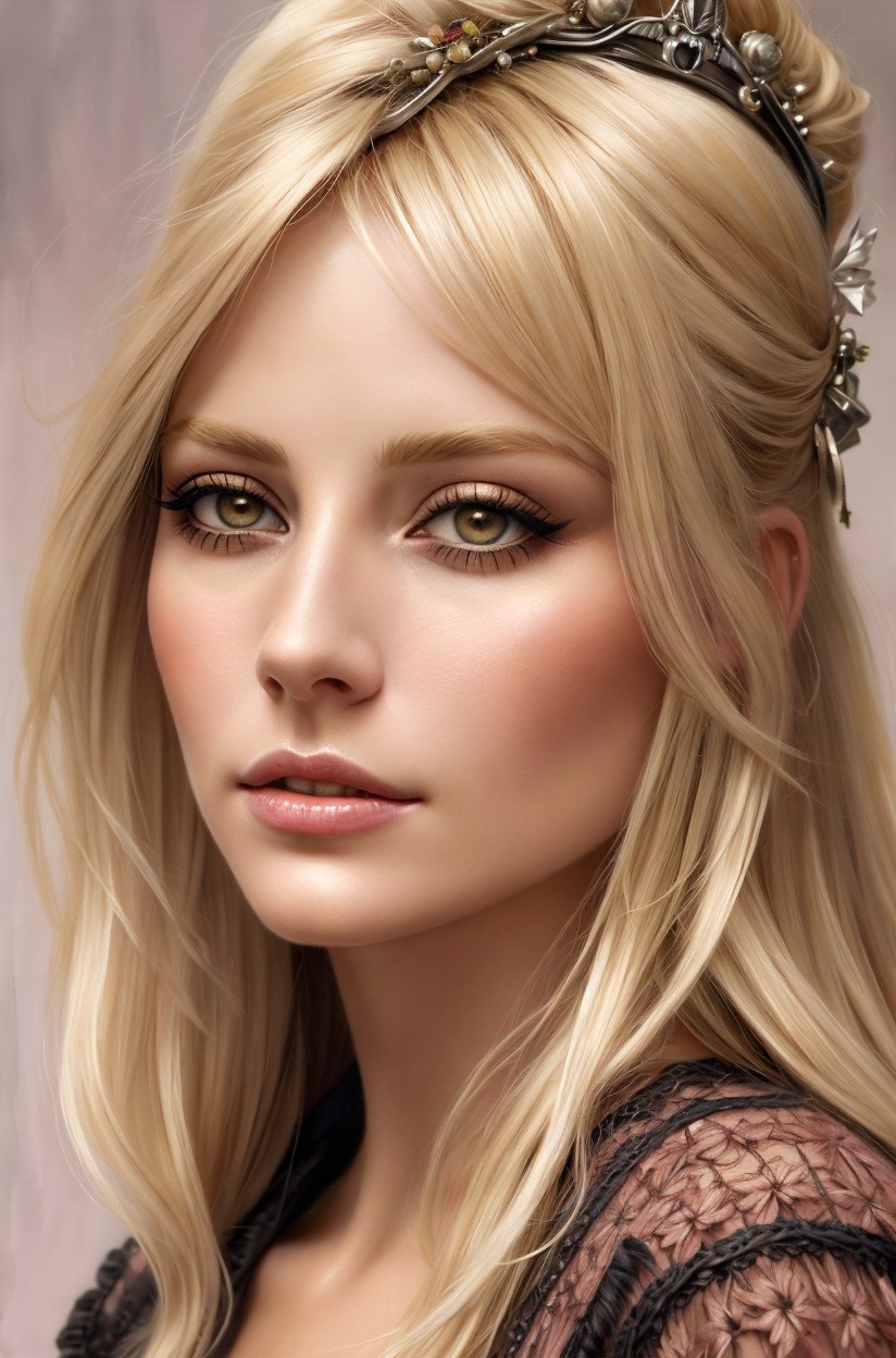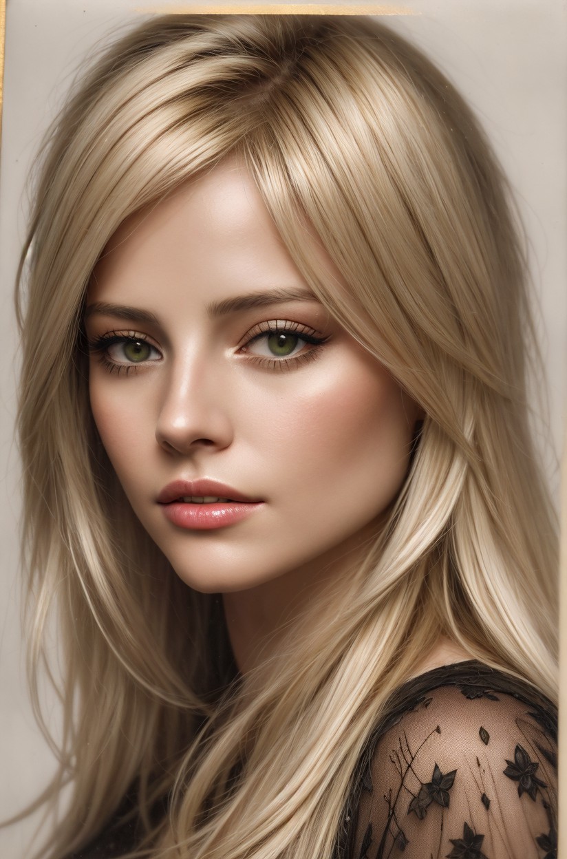 Portraiture, close-up of blonde temptress, mixed media collage, textured, layered, chiaroscuro lighting in background, inspired by Barbara canepa and Overton Loyd, elements of kintsugi on the edges ,grain, muted colors 0.8, gothic dimmed fantasy, patina, subtle bokeh effects, the entire composition exuding an aura of joy and longevity, with an intense focus on brushed textures, dynamic lighting 1.7, strictest pose, capturing sharp details, psychedelic psychpomp scene, victorian collar, beautiful composition, tints of instaport style 1.6, high coloring 1.9, triadic color scheme pink purple grey, ambient occlusion 1.5, anisotropic filtering 1.7, hues, plasticity 1.6, complexion 1.4, radiance, bioluminescent details 1.9, octane render illustration 1.5, vaporous, creamy, sweaty, tribal, auracore, anglocore 1.7, cottagegore 1.9, atompunk 1.7, shadow mapping 1.8, wavery texture patchwork, vibrant, kinky, serene, magical realism, mysterious appearance, spiritual essence, encaustic strokes, shiny sparks, daguerreotype photography on old paper,