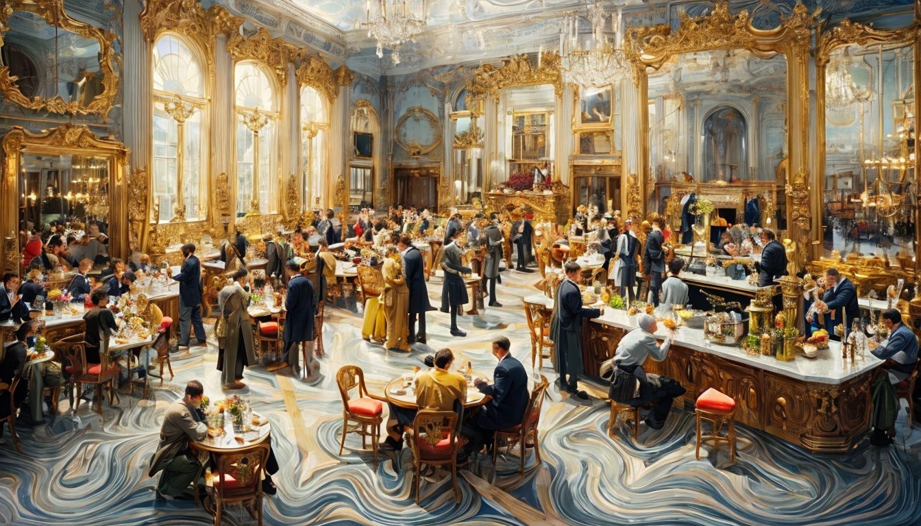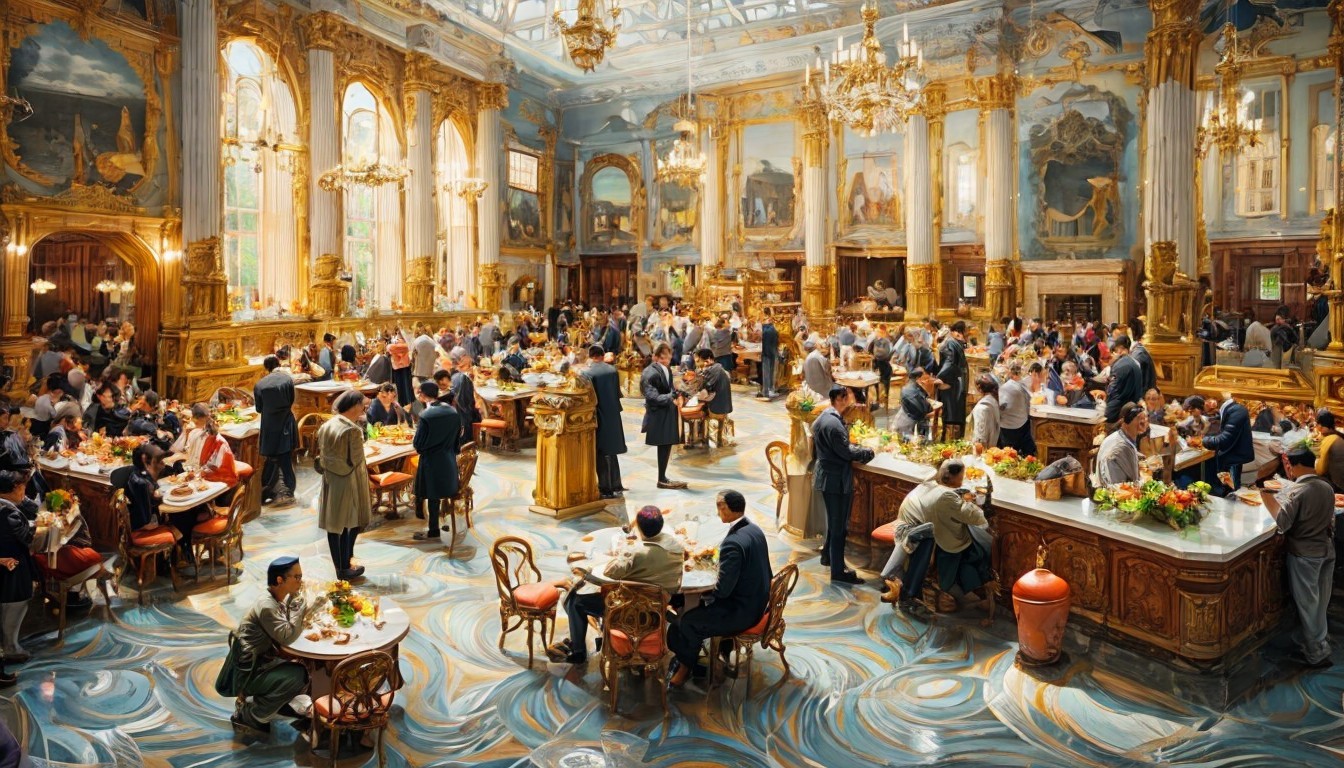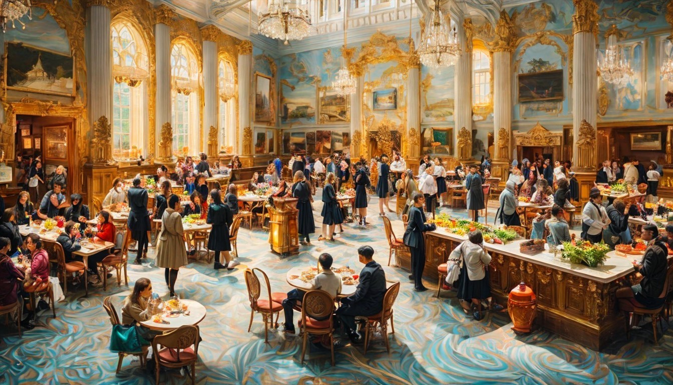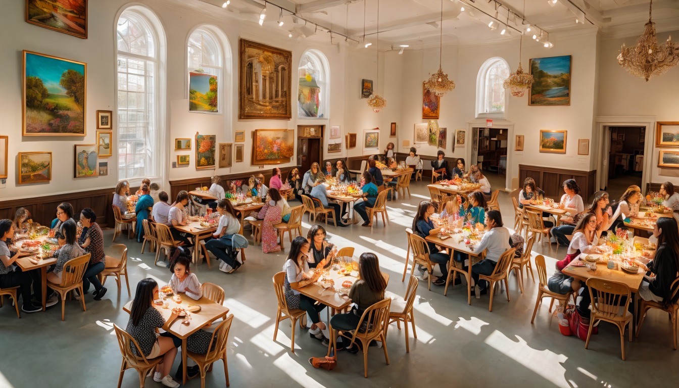 Spacious Dining Hall with Vibrant Decor and Natural Light
