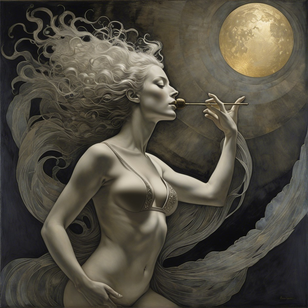 Surreal dream Tribal soul. In the darkness I dance, nostalgia, glory, Mercury Glass patina, light and gossamer haze, topographic lines, Art Brut, moody, somber, desaturated colors. In the style of John Rogers cox . This artwork amalgamates the artistic styles of Michael Parkes,