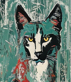 Ernst Ludwig Kirchner style. Graceful lines, elegant white horse, playful kitten, majestic owl, serene cat, intricate details, Jean-Michel Basquiat-inspired style, fine art, detailed linework, harmonious composition, soft color palette, expressive animals, whimsical atmosphere, artistic interpretation, subtle textures, artistry, creative fusion