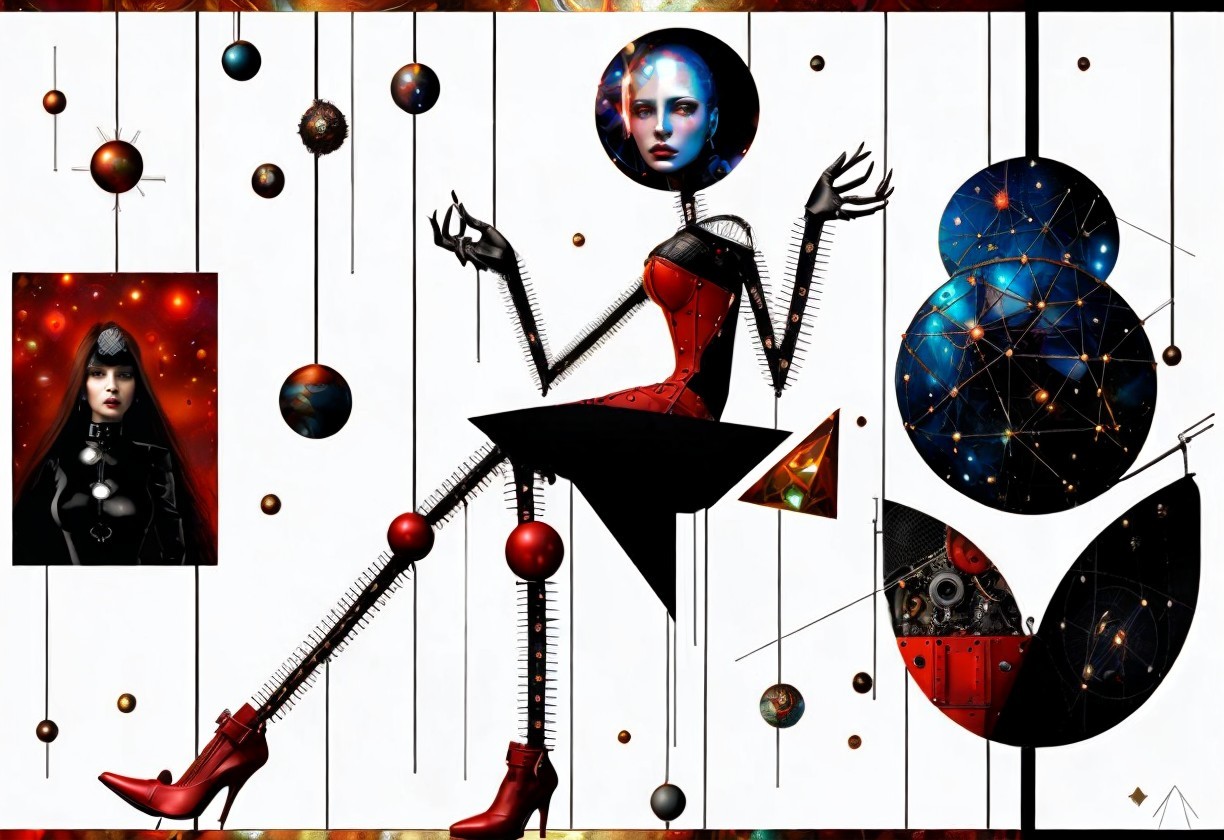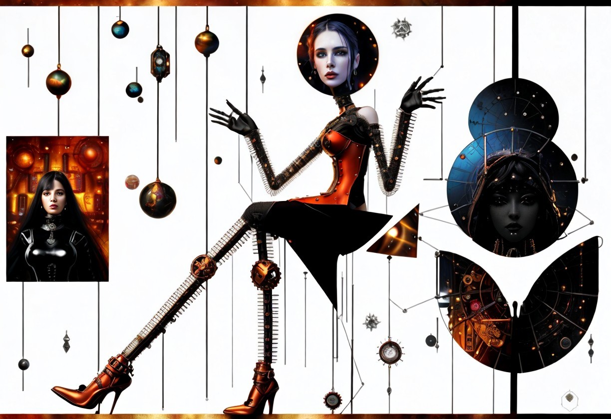 + Prompt:WOMAN of cybernetic beauty, steampunk wire-mesh suits, pipes of hell, hellraiser, pinhead by H.R. Giger, planets in the brain, merged double exposure mixed media, Gustav Klimt and Bill Sienkiewicz, intricate high detail crisp quality cosmic