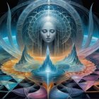 A futuristic scene showcases a massive, glowing structure with an intricate design, surrounded by a crowd and vintage cars. Bright beams of light emanate from the center, creating a dramatic atmosphere.