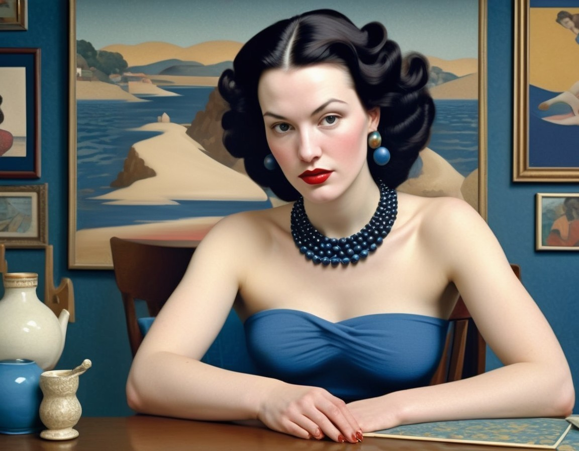 Ethereal geometry meets bold lithographic style in a hypnotic portrait of a beautiful woman. Utilize pointillism techniques reminiscent of Georges Seurat, Henri-Edmond Cross, and Oyvind Fahlstrom. Infuse woodcut-inspired graphics for a unique touch. Capture the essence of mesmerizing artistry with intricate details and striking contrasts. Incorporate a dreamlike color palette of soft pastels and vibrant accents. Illuminate the scene with a mix of soft and dramatic lighting to enhance the hypnotic allure. In a completely black and white portrait, a woman and a bi-color (white with tan patches) cat are lying down. The woman has fair skin and a relaxed facial expression, with her dark wavy hair spread out on a beige cushion behind her. She looks directly at the camera with one eye partly open, her other eye obscured by the cat's head. Her visible eyebrow is thick and slightly arched. She is wearing a simple white top, and her features are softly illuminated by diffused lighting. The cat is close to her face, with its nose touching her cheek, ears perked up, and eyes closed, conveying a sense of trust and affection. The woman and the cat are on a textured light grey fabric background, and the image has an intimate, candid feel with a vertical orientation.bygobi