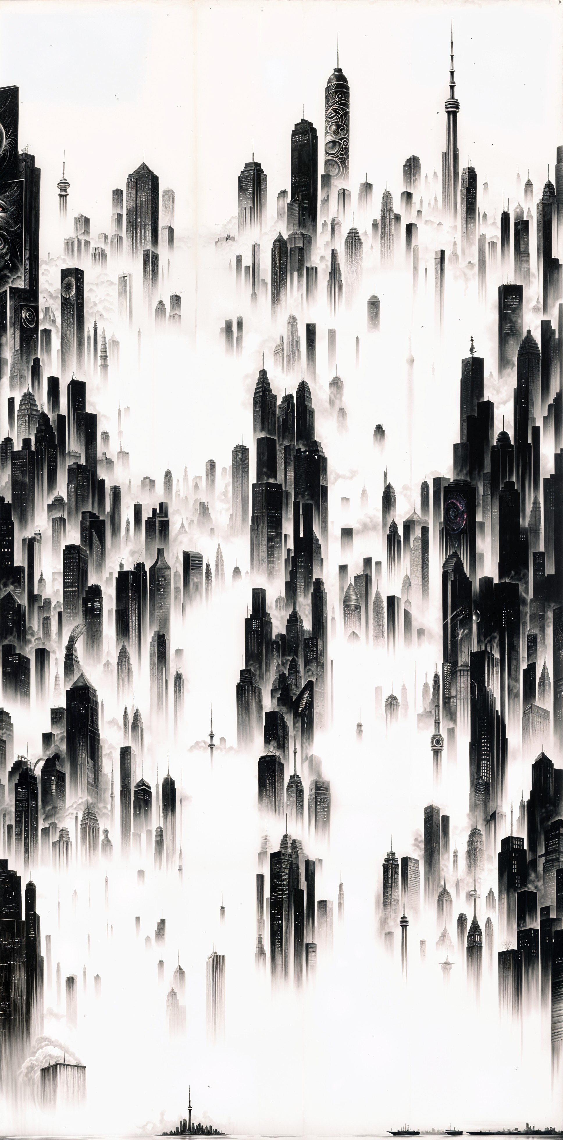 The image depicts a dense crowd of shadowy figures in hats and coats, shrouded in mist. The silhouettes create a mysterious, atmospheric scene reminiscent of a vintage urban landscape.