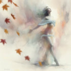 A graceful figure stands with an ethereal quality, surrounded by soft, swirling colors. The blending hues evoke a sense of serenity and movement, capturing a dreamlike, otherworldly essence.