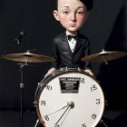A mesmerizing portrait of a mysterious woman adorned with vibrant, swirling patterns. She gazes introspectively, with a surreal circular artwork below, featuring festive trees and colorful orbs.