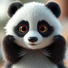 A cute cartoon panda holds a fishing rod, wearing a casual t-shirt. It stands near a serene lake with mountains in the background, exuding a playful and friendly vibe.
