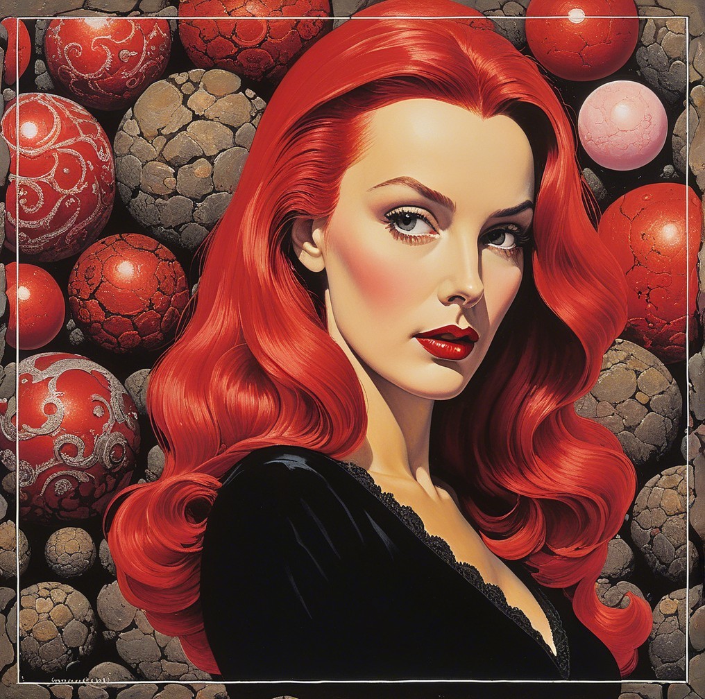 + Prompt:Hradshit in Rich blacks, burgundy's and blood-red hues meld with the gituucal ornate details of stan lee and frankFazetta, tiny brushstrokes of gil bruvel and Leonora Carrington ,renaissance painting, gouache, surreal, cosy face expression, dripping details, orbs, blobs, stone wall textures, otherworldly, overspray of paint, Bloom-Effect, plasticity 1.3, anthotype, anatomically correct features, precise Gelsculpt 64K, parallax occlusion 1.2, raytraced shadows 1.8, divisionism, rule of thirds, line-art patchwork 1.8,