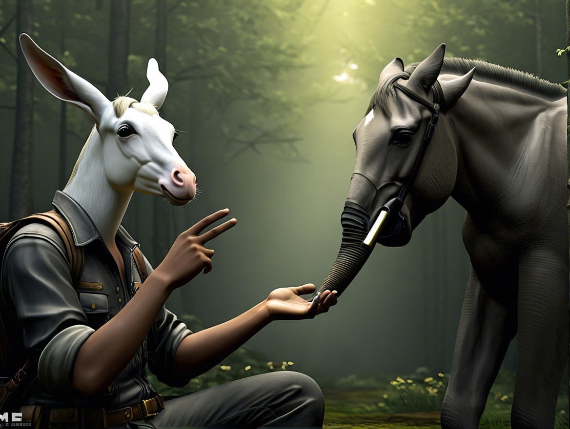 Whimsical Forest Scene with Goat-Headed Man and Elephant