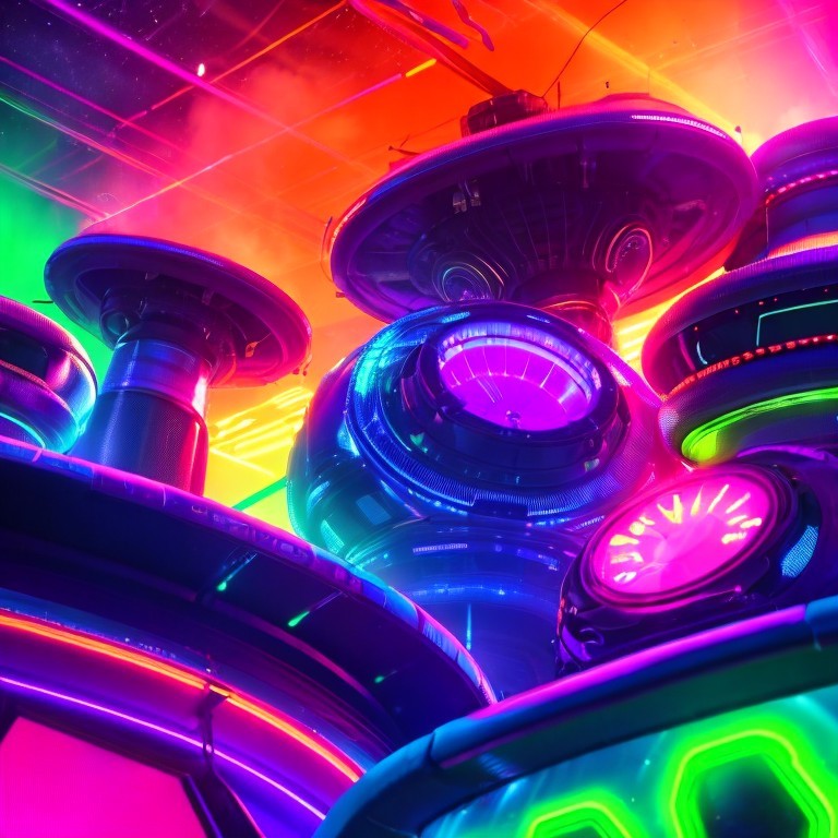 Prompt: In a pulsating haze of neon, toxic alien creatures dance wildly, their phosphorescent bodies glowing under UV lights. Beats thump like heartbeats, toxic mists swirl, as the unearthly discotheque throbs with an otherworldly rhythm, a chaotic symphony of extraterrestrial revelry.