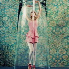 The image features three ethereal figures with flowing hair and intricate dresses, set against a tranquil blue background. Their graceful poses convey a blend of elegance and mystique.