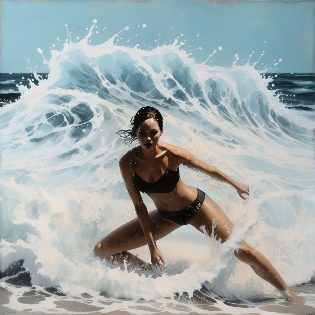 Prompt: "silver 3D splash art, beautiful woman coated in silver paint, silver splash art, ocean of silver paint, beach, liquid acrylic rain, shiny, photorealistic, high definition, 8k, sensual, 3d render, unreal engine, cgsociety, very attractive, award winning, centered, symmetry, painted, intricate, volumetric lighting, beautiful, rich deep colors masterpiece, sharp focus, ultra detailed, in the style of dan mumford and marc simonetti, astrophotography"