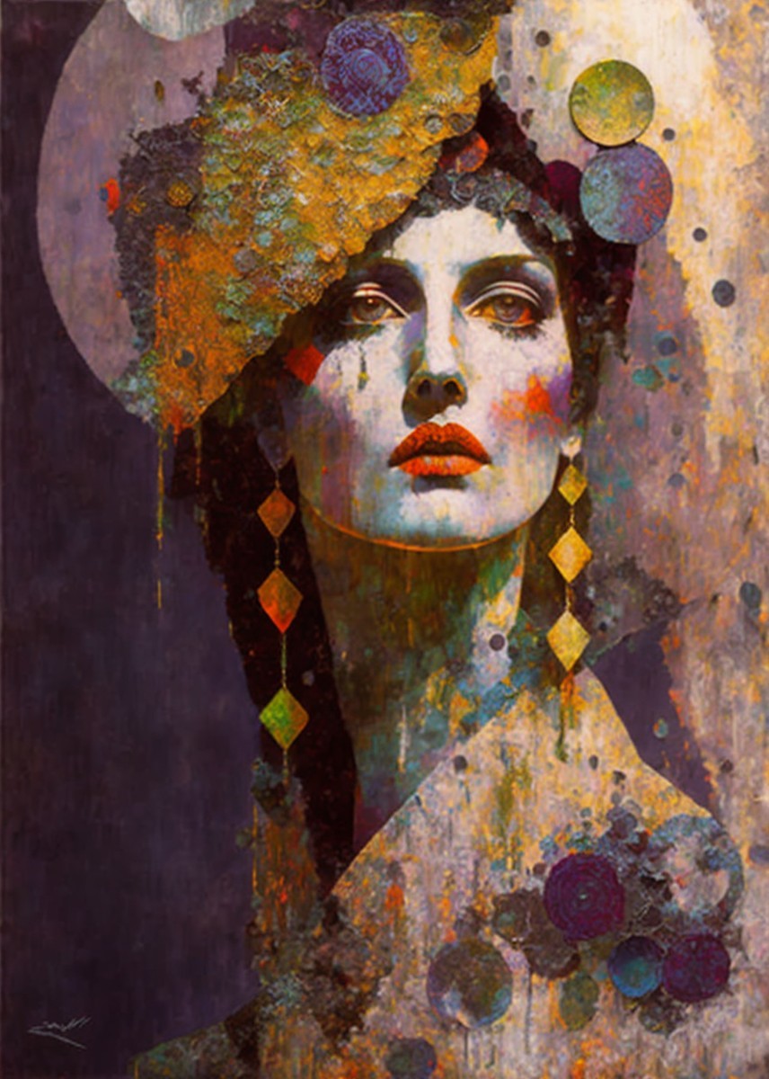 Cubist-style portrait of a woman with geometric shapes and a muted color palette.