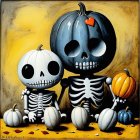 Whimsical Skeletons with Pumpkins in Autumn Setting
