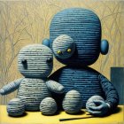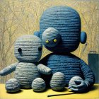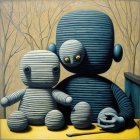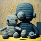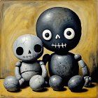 Two pumpkin-headed skeletons share a silent tenderness among small gourds and falling leaves. Naïve and surreal, the scene fuses mortality and warmth—an autumn hymn where simplicity holds emotion beyond words.