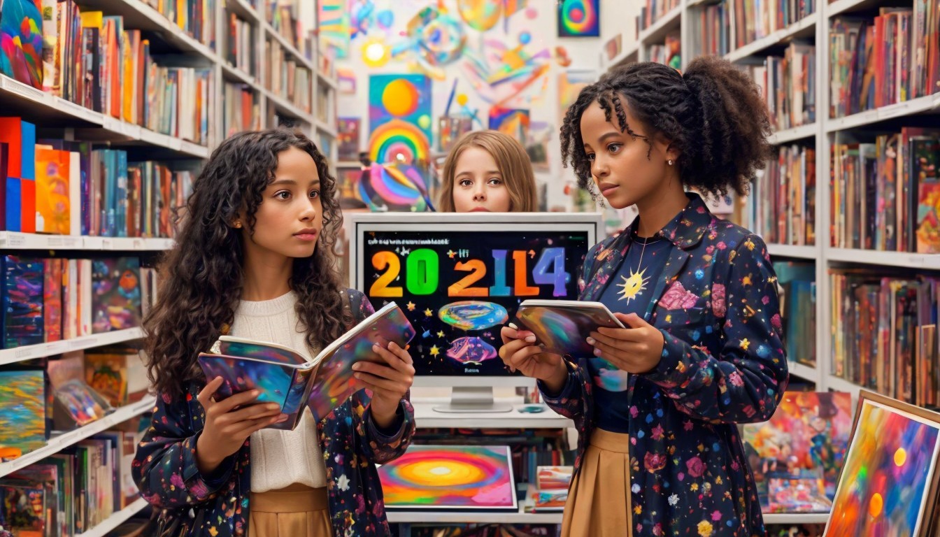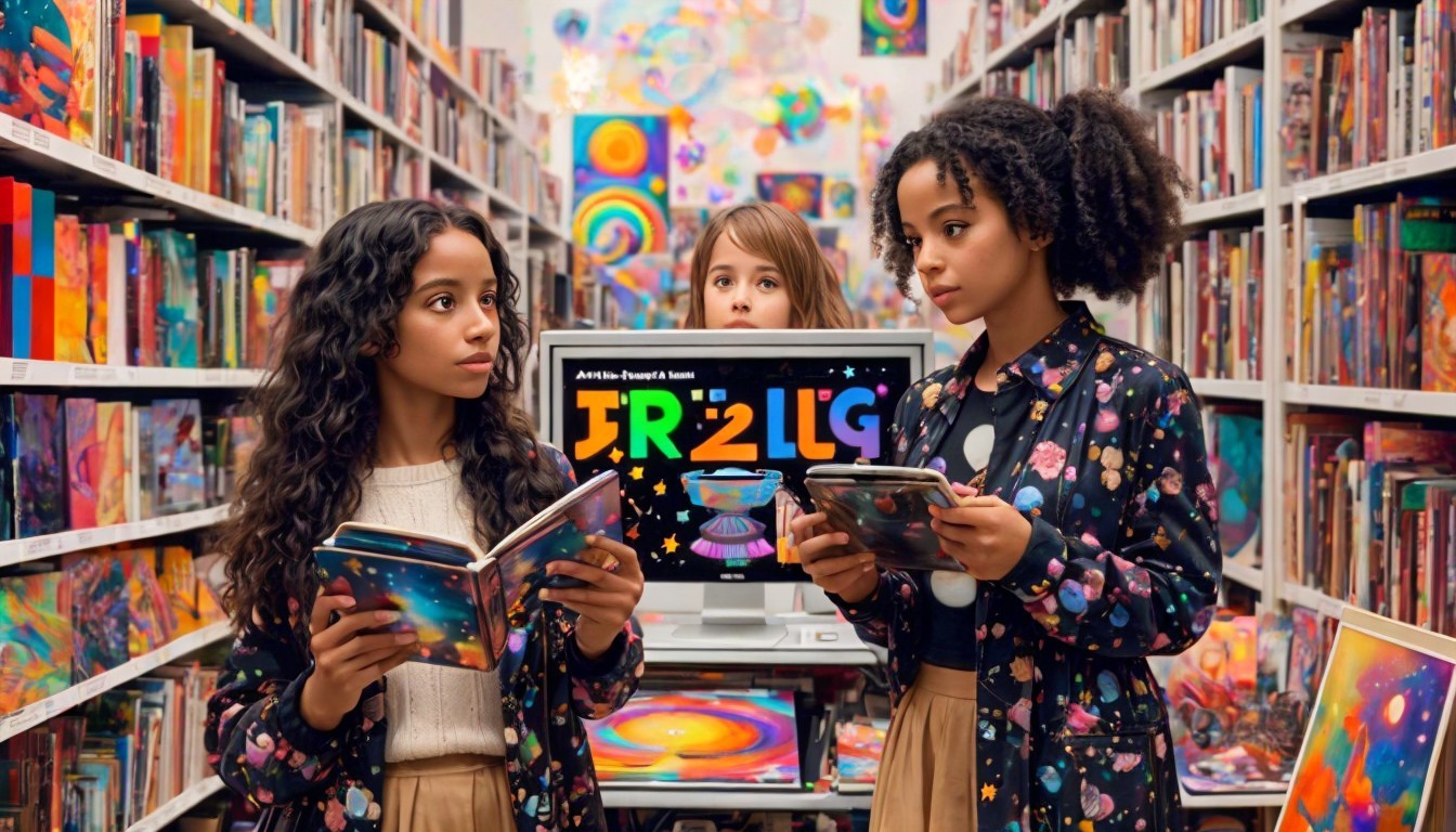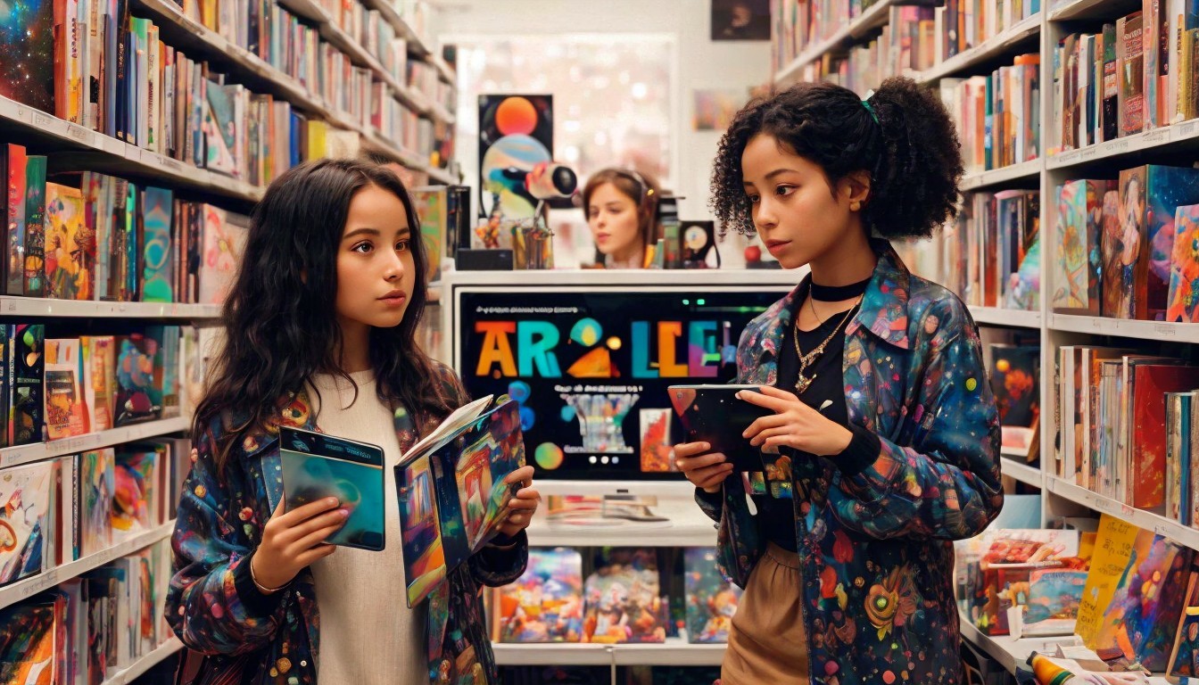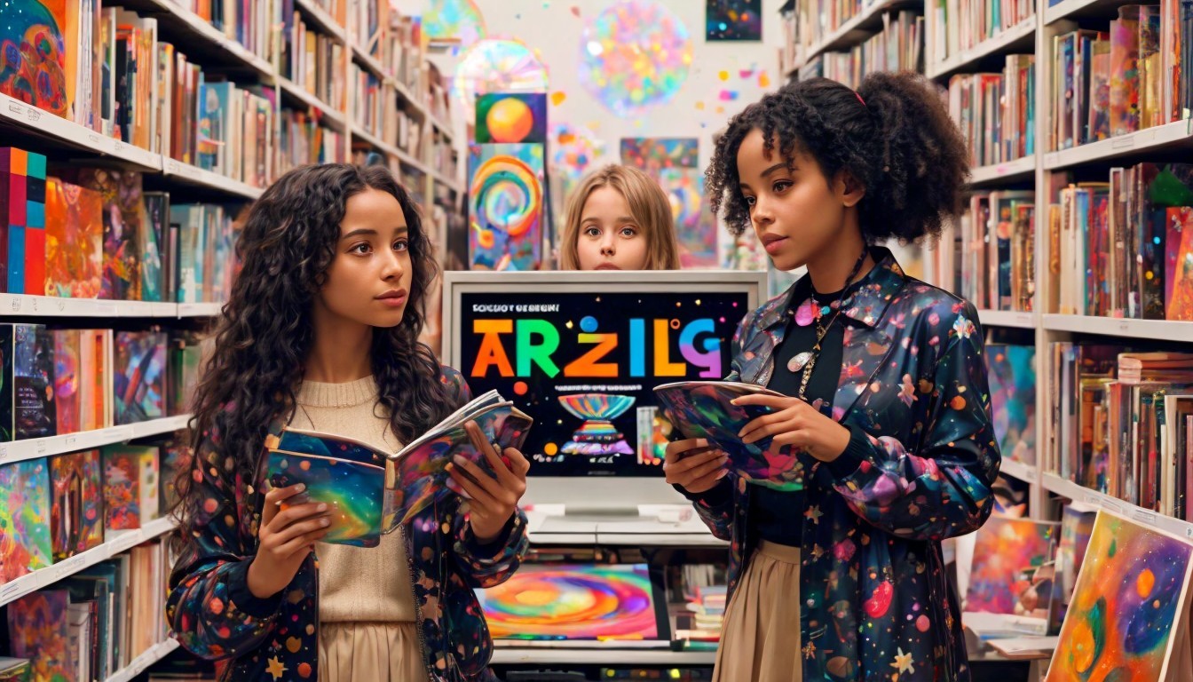 Prompt: Art Gallery Girl and Art Studio Girl have decided that the answer provided by the computer Deep Thought (from Hitchhikers Guide to the Galaxy) for the meaning of life the universe and everything actually is 42 after all