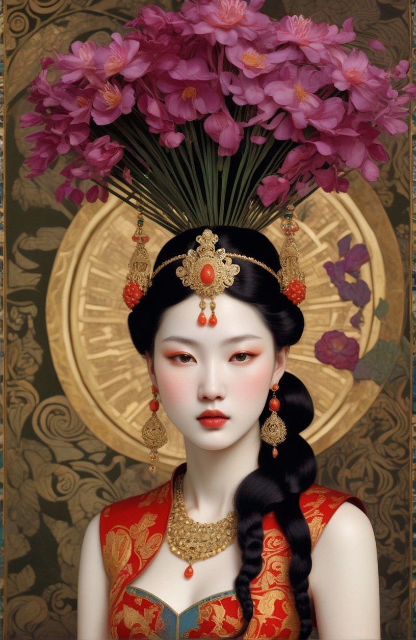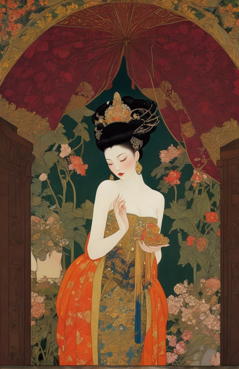 Ivan Bilibin, flat color, dirty color, hot tones, perfect body