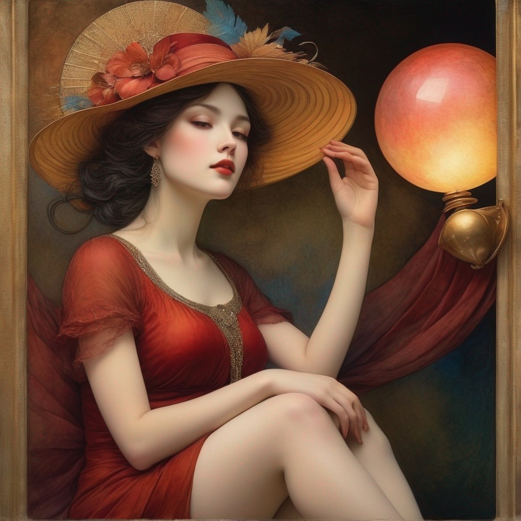 Prompt: Iridescent watercolor and ink By Jamie Heiden, Daniel Merriam, Paul Klee, Karol Bak, Dee Nickerson, extremely detailed, high definition, crisp quality, ultra detailed background art nouveau New Year’s Eve ball.