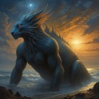 Majestic Sea Creature with Lion-Like Face at Sunset