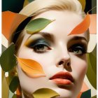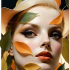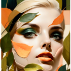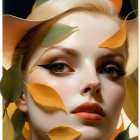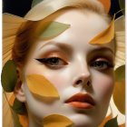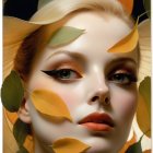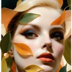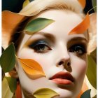 Close-Up Portrait of Model with Green Eyes and Leaves