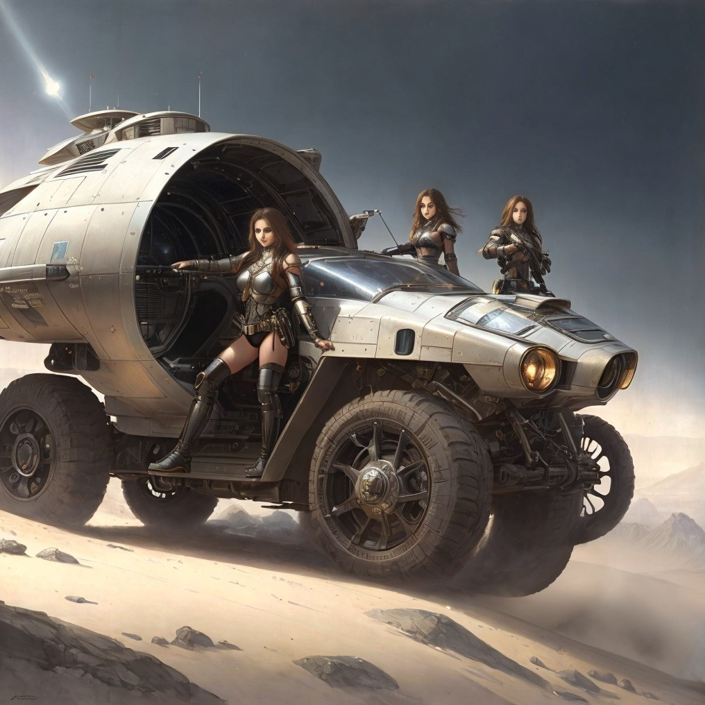 + Prompt:The 22nd century of mankind. The distant future of civilization. The empire of cyborgs and beautiful warrior maidens. by Jean-Baptiste Monge, by Abraham Bosse. by Pre-Raphaelite Brotherhood