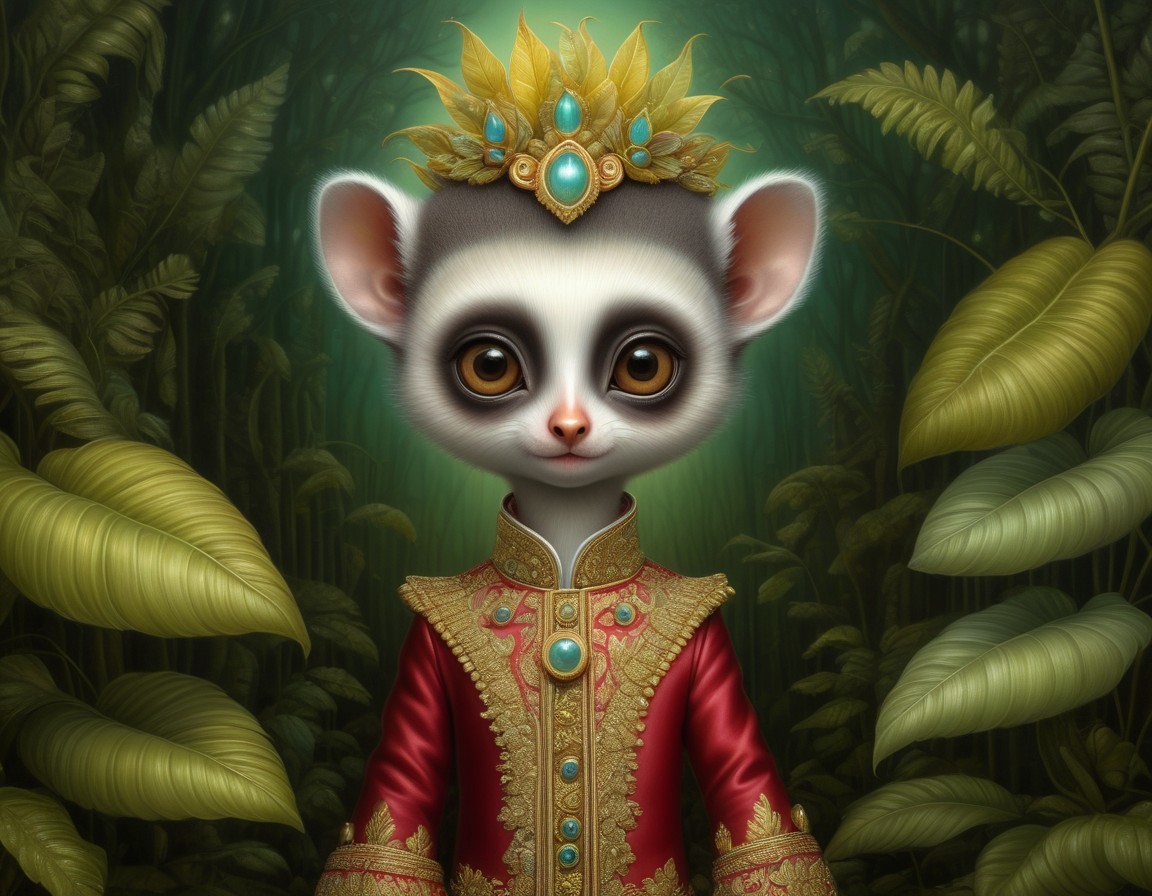 beautiful lemur-human hybrid MALE child, leaves by mark ryden, nicoletta ceccoli, naoto hattori, fractal psychedelic, lsd, electricity