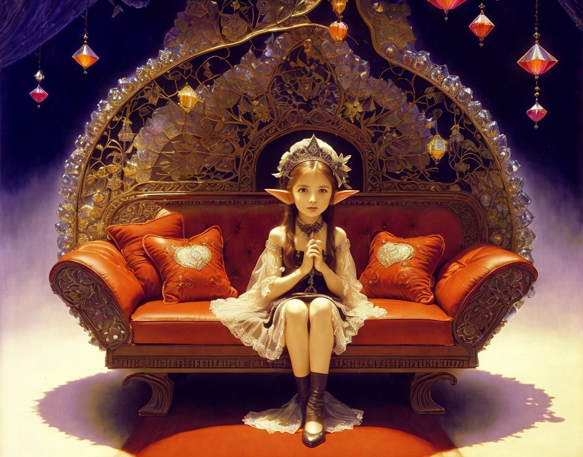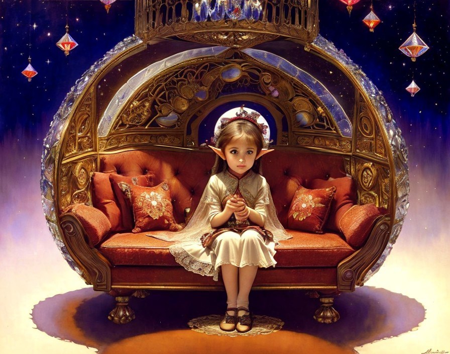 Prompt: "cute little elf is trying to burn a leather couch in the spacious castle bedroom , Chinese Crystals, Art Deco, Deep Rich Triadic Colors, Lalique Glass, style of Flamenco, highly detailed, Artist Jean-Baptiste Monge style. Artist Jean-Baptiste Monge style. Night scene. A starry sky. A vast empty beige desert"