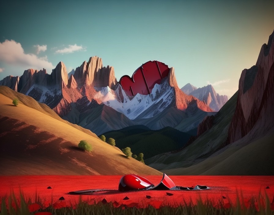 Surreal Landscape with Vibrant Red and Orange Terrain