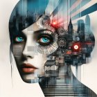 A striking portrait of a model with bold, colorful makeup and dramatic hair. Vibrant splashes of paint in the background enhance the artistic vibe, creating a captivating fusion of beauty and creativity.