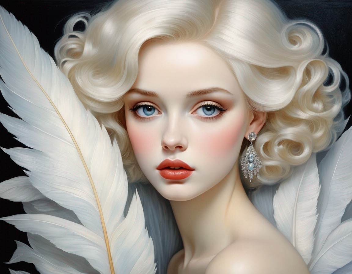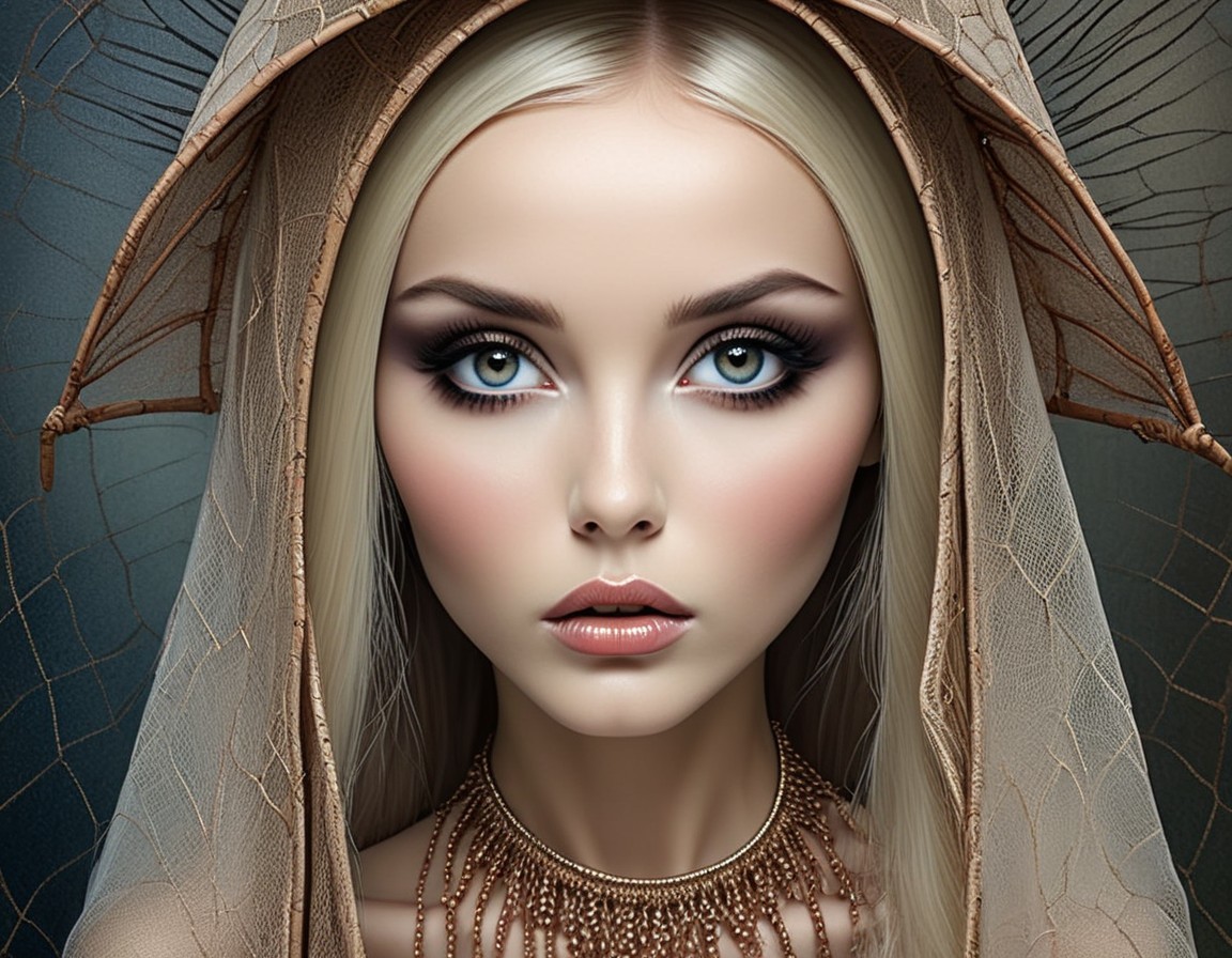 Young woman with blue eyes and ornate gemstone hood