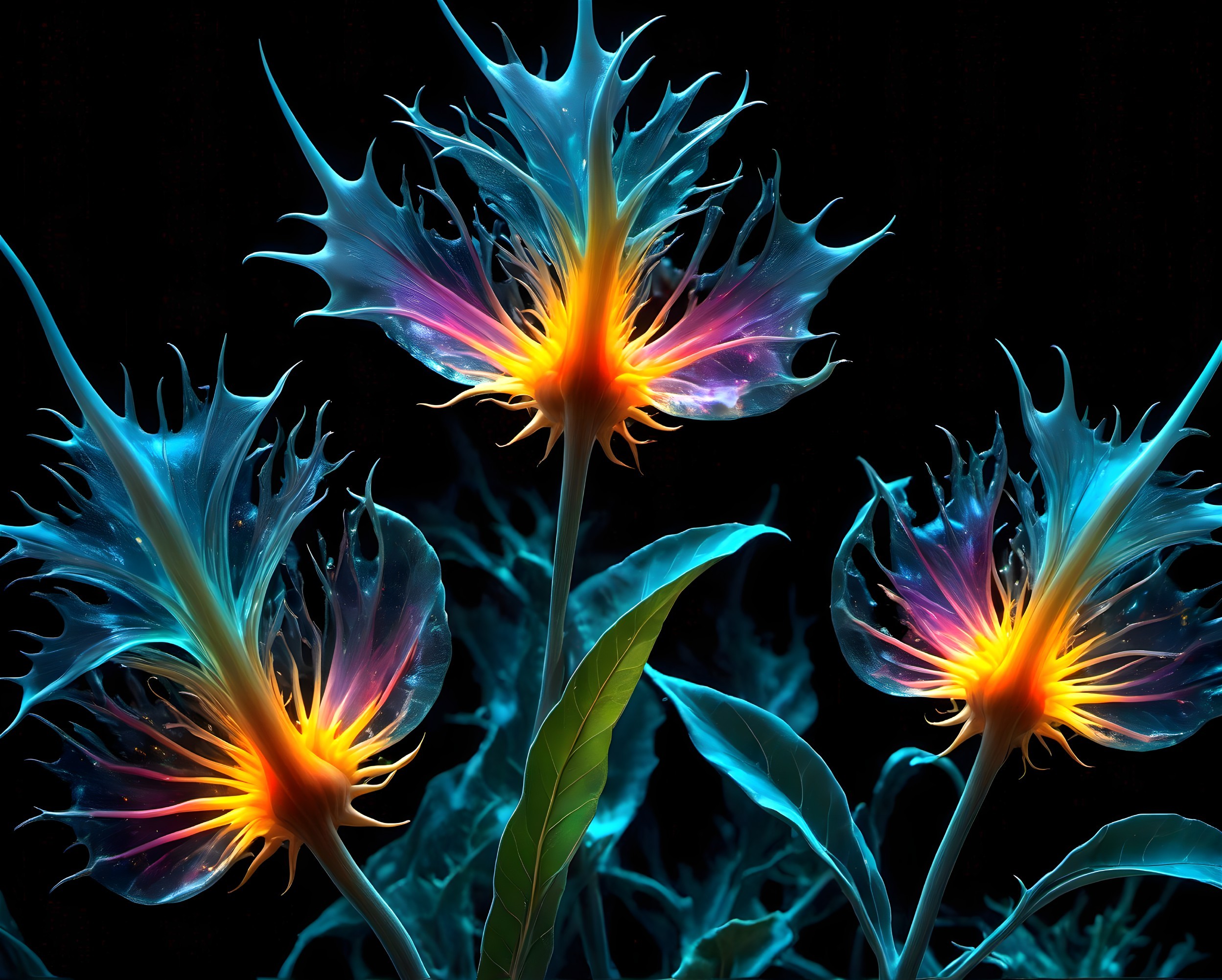 + Prompt:the close up X-ray MRI of the thorn apple is a bioluminescent ocean of flowing channels of colorful cholorplasts. The X-ray is set to wide-angle to capture detail and background information.