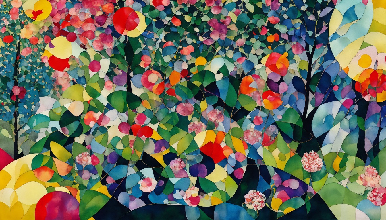 + Prompt:big bed in the middle of a flowery meadow, shaded by a blossoming cherry tree; tissue paper collage and alcohol ink with overpainted metallic highlights; coherent, balanced composition