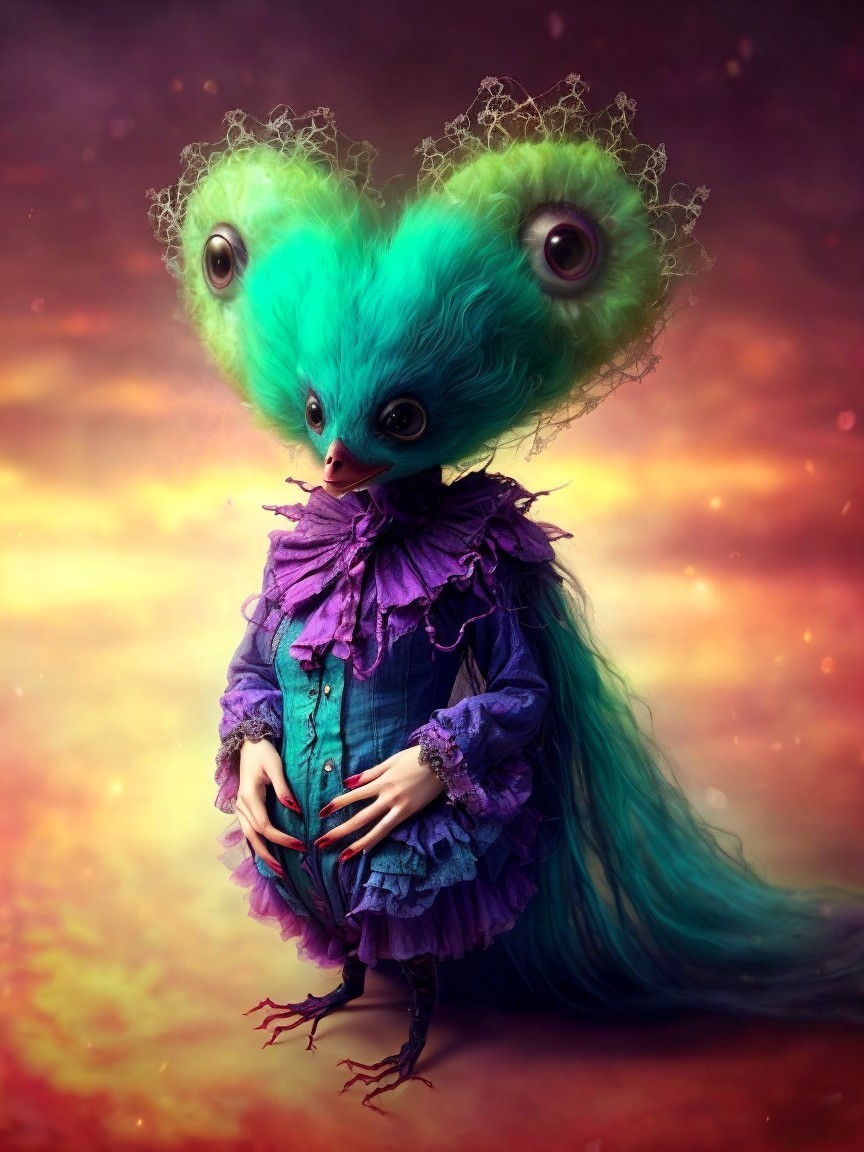 Prompt: "subsurface scattering art decadent ........... Mantras for Peaceful Death, Be a Virus, Be resilient! By Tim Burton, as a cute duckcat dressed and went in a straitjacket to a mental hospital trying to be mentally ill in the style of Andy Kehoe and H. R. Giger, horror style, very long legs and large symmetrical deep keen eyes, four legs, very long odd face, macabre bio impressionism, The 33rd degree Freemasonry"