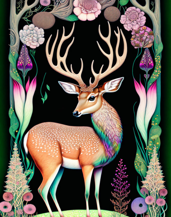 Colorful Bird Illustration with Teal, Pink, and Purple Flora