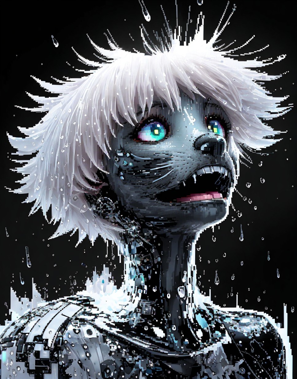 Prompt: "x e n o b i o l o g i s t (( Happy Suffering Companion In Onomatopoeia (Synthography, 2030 Artist Jean-Baptiste Monge) ‘Pixel Sorting’ Stretched 3d scattered Tetris Pixel Glitch Art Effect (Raindrops captured with ultra slow motion camera melting watercolor and black ink outlines on wet paper, soft, shading strokes) in a style of trapped bubbles in cracked iridescent glass Suffering Negative Mind Encountering the Shadow Self In Digital Collage, impossible wet collodion process of style of emil melmoth and by roger ballen, medium - format print, people screaming, By Enrico Robusti and by Alexander Runciman, ffffound, radioactive particles, made of crystalized synapse, nineteenth century, artforum, goya, necrosis, scp 3008, 1800s photo of a deformed of left ear, Hamlet, Here Everything is Nonsense in Wonderland where I see failure…I see struggle…But I also see LOVE! ))"